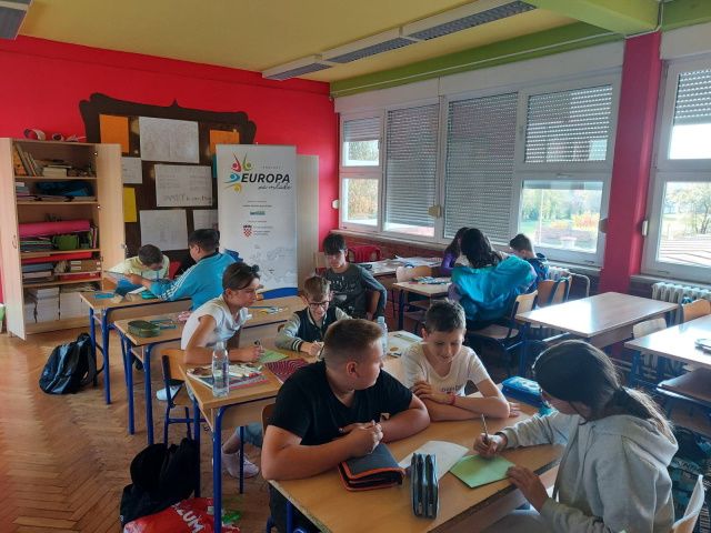 Tijekom radionice, učenici su na kreativan način izrađivali brošure o Europskoj uniji i posjetu parku prirode Papuk. Marljivo su radili te rezultate pokazali u izradi zanimljivih brošura.