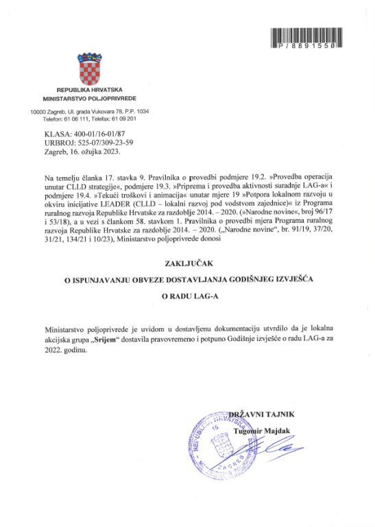 Godišnje izvješće LAG-a Srijem ocijenjeno pozitivno i pravovremeno!