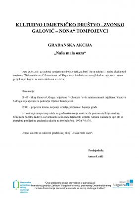 Poziv na radnu akciju u okviru odobrene građanske akcije "Naša mala oaza"