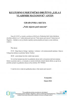 Poziv na radnu akciju u okviru odobrene građanske akcije "Naše mjesto pod suncem"