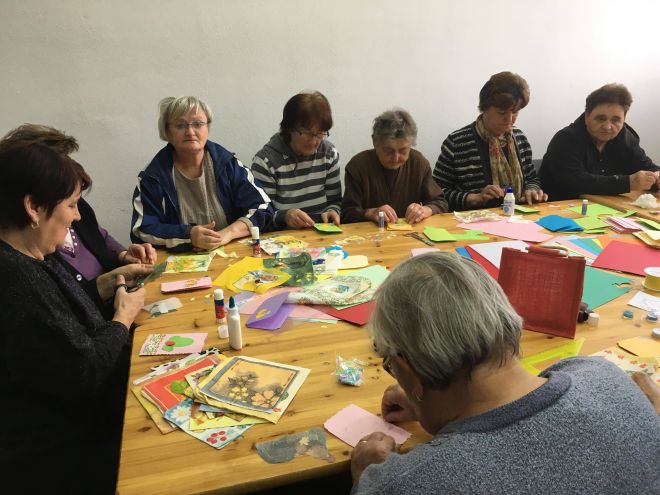 Uz mnogo različitih šarenih ukrasa, Uskršnjih motiva i raznih materijala, korisnici su izrađivali čestitke povod Uskrsa. Odazvali su se u velikom broju. Bili su vrlo zainteresirani i aktivni tijekom radionice te su u razgovoru nastavili druženje.