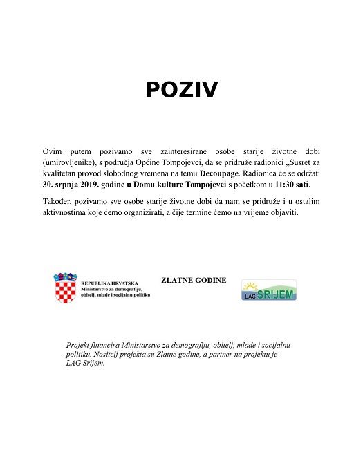 POZIV - Susret za kvalitetan provod slobodnog vremena na temu "Decoupage"