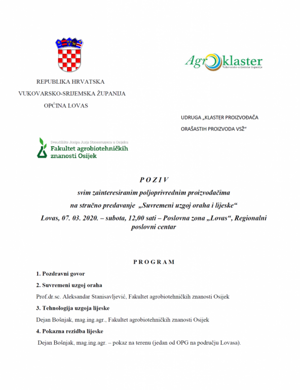 [POZIV] Stručno predavanje na temu ,,Suvremeni uzgoj oraha i lijeske”