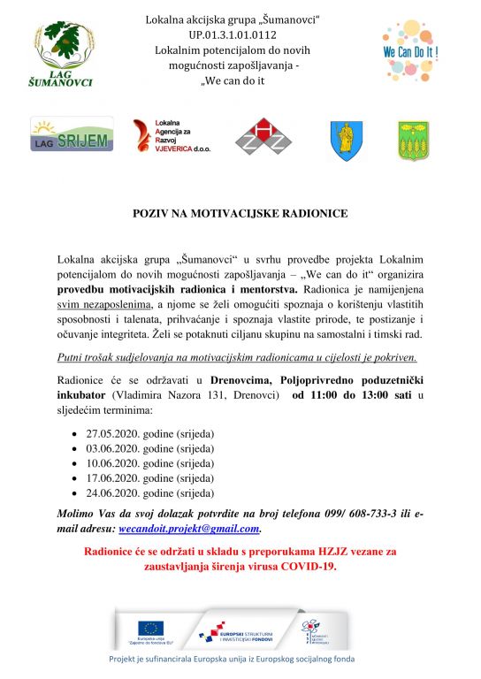 POZIV NA MOTIVACIJSKE RADIONICE U OKVIRU PROJEKTA "WE CAN DO IT"