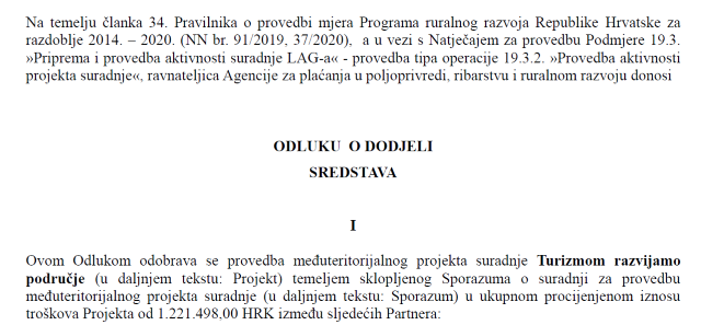 Zadovoljstvo nam je objaviti kako je dana 13. listopada 2020. godine Agencija za plaćanja u poljoprivredi, ribarstvu i ruralnom razvoju donijela Odluku o dodjeli sredstava, kojom je odobren međuteritorijalni projekt suradnje, prijavljen u okviru Podmjere 19.3. Uz LAG Srijem, partneri na projektu su: